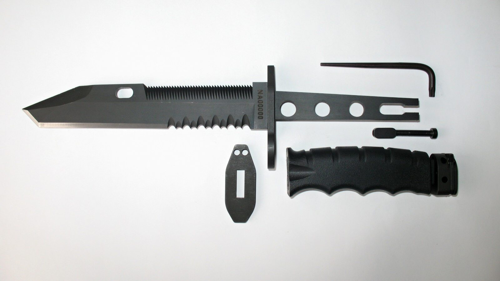 Bodák ke službě pušce CZ 805 BREN ve třech vývojových variantách. Moderní víceúčelový bodák AČR s plastovou pochvou a nylonový závěsem.