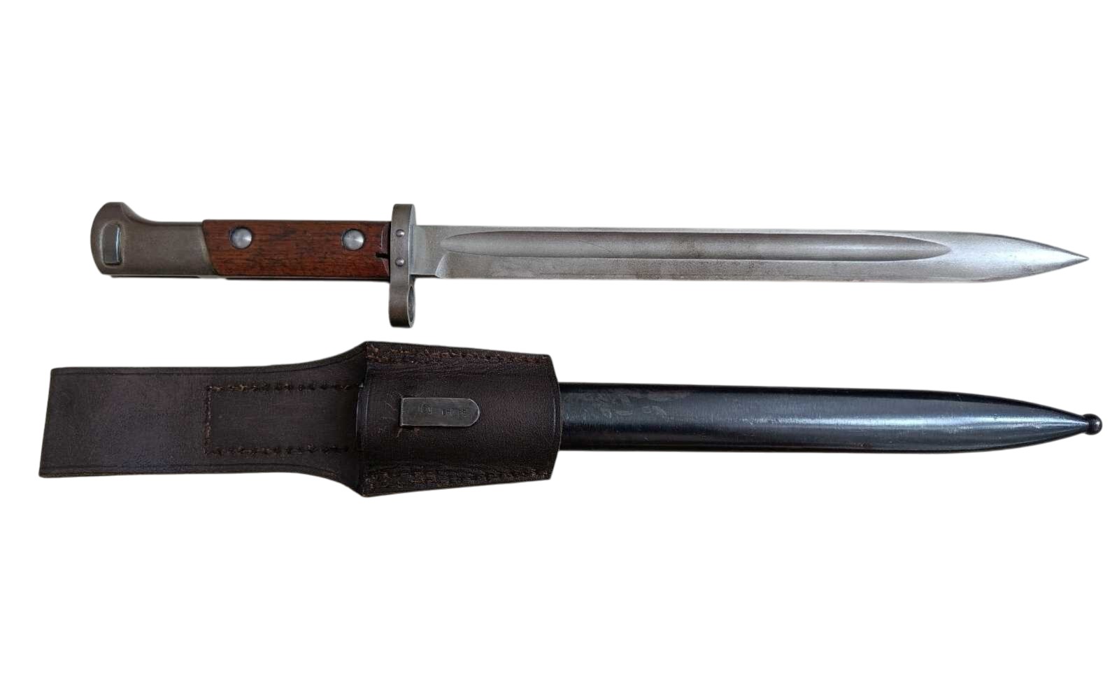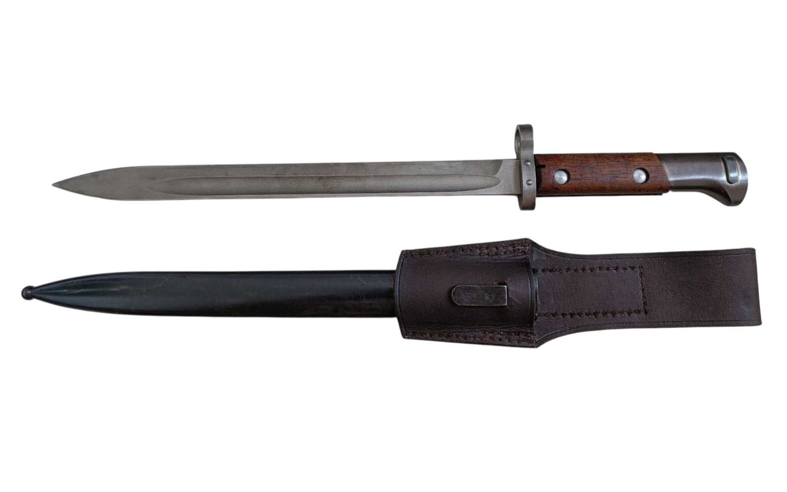 Bodák vz.24 TGF 1948 – bodák a pochva s koženým závěsníkem odděleně