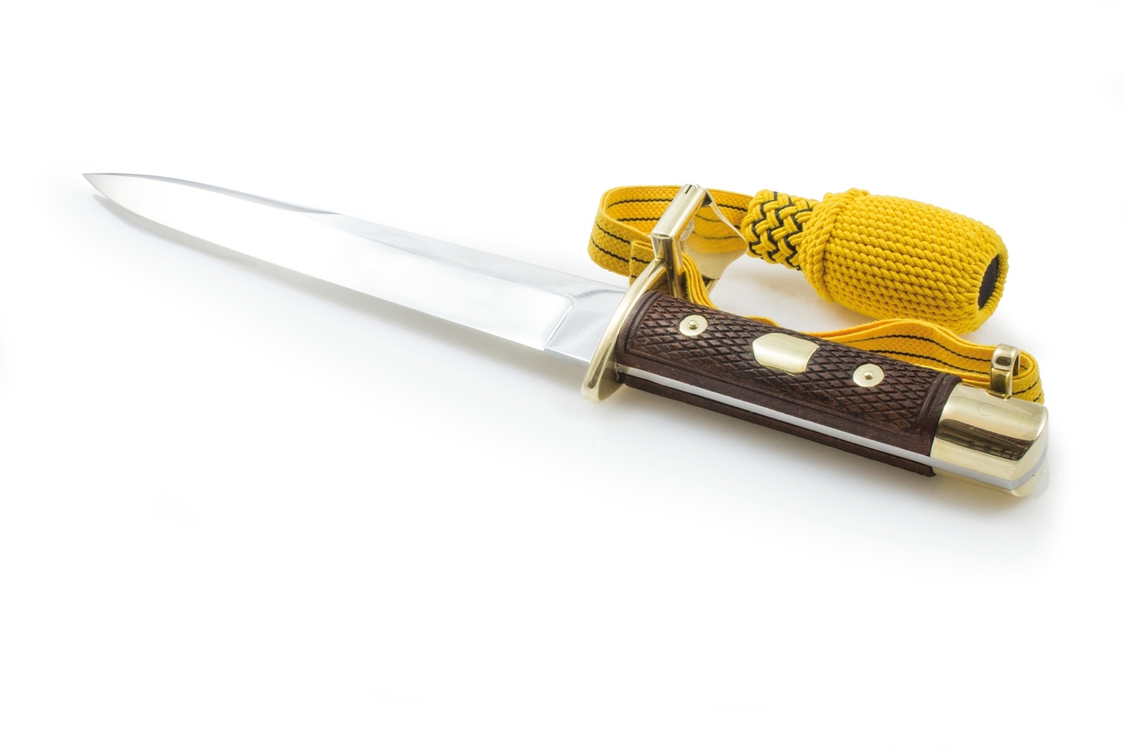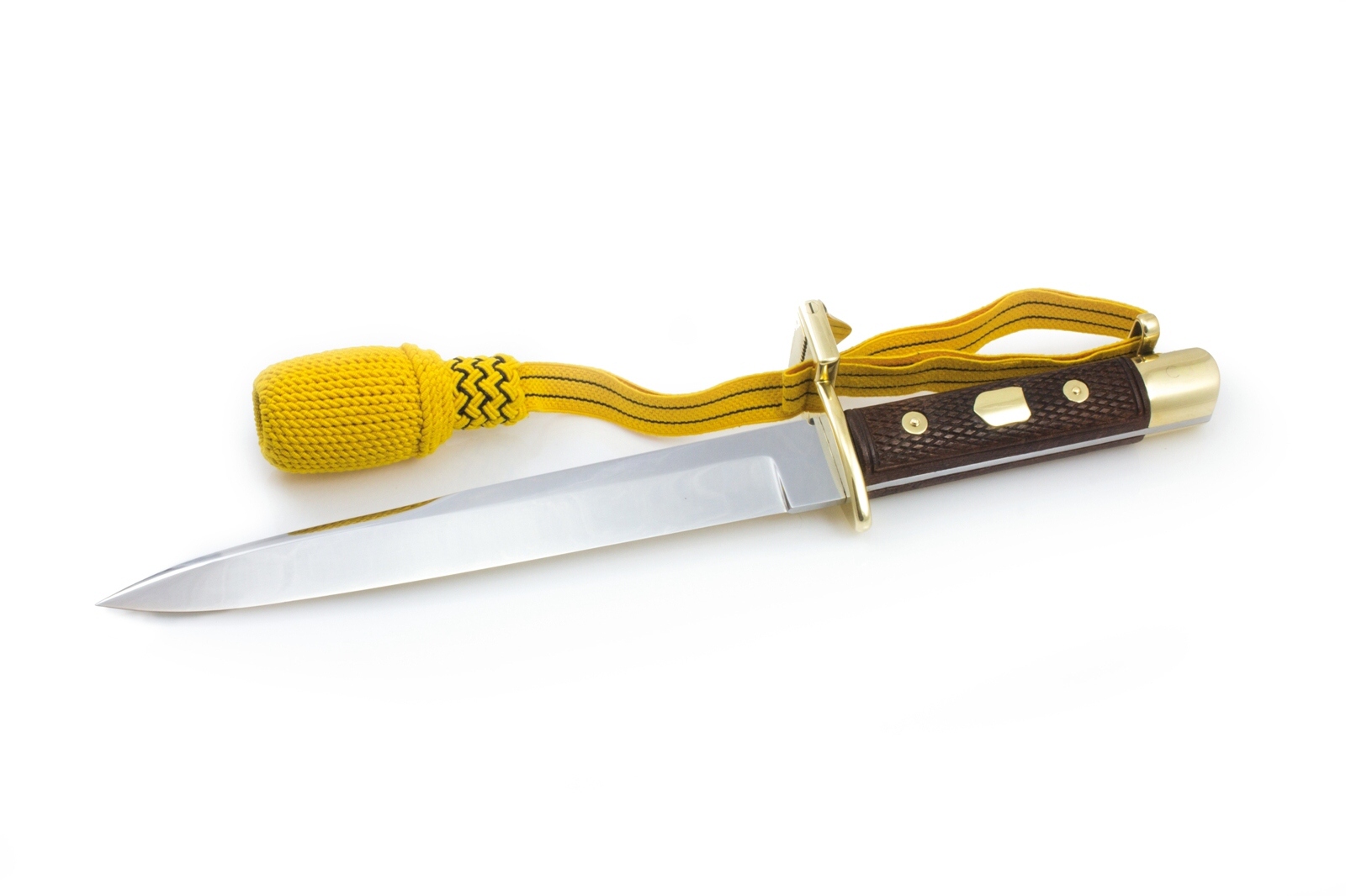 Na výrobu čepele byla použita nerezová ocel AISI 420. Kování, erb a nos pochvy jsou ze slitiny mosazi. Ručky jsou z mořeného bukového dřeva s rybinovou výzdobou. Pochva je z ocelového plechu a matně černé hovězí kůže. Nůž je dodáván v polstrované dřevěné kazetě s certifikátem originality a publikací o historii této zbraně.