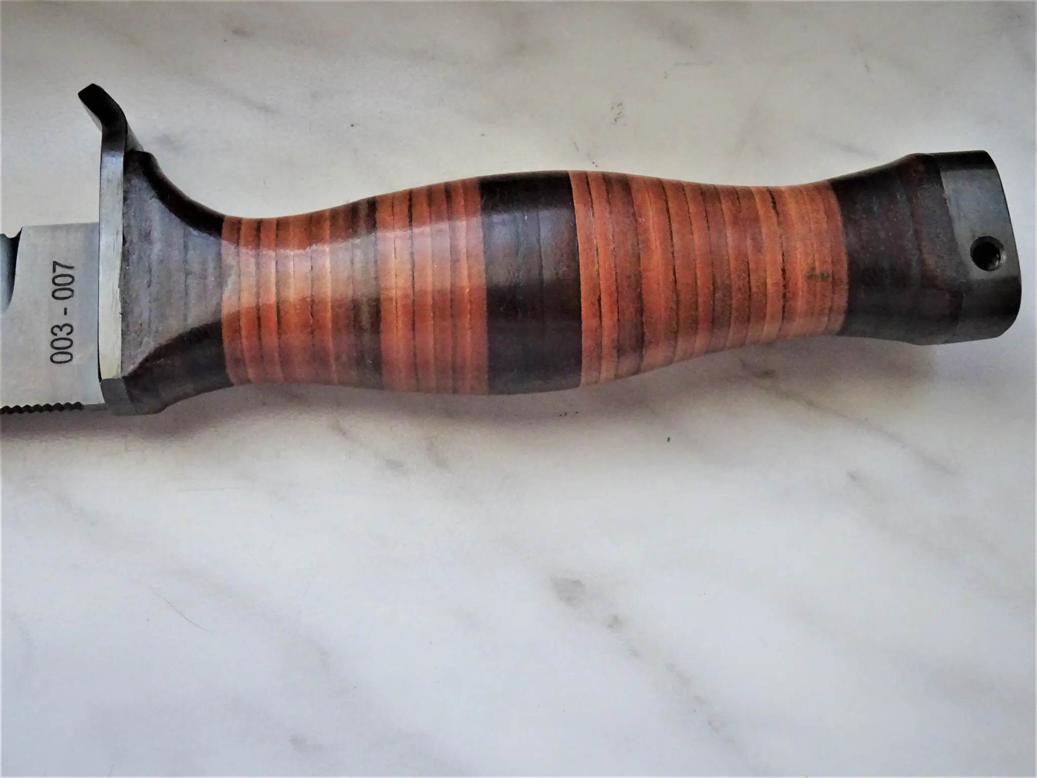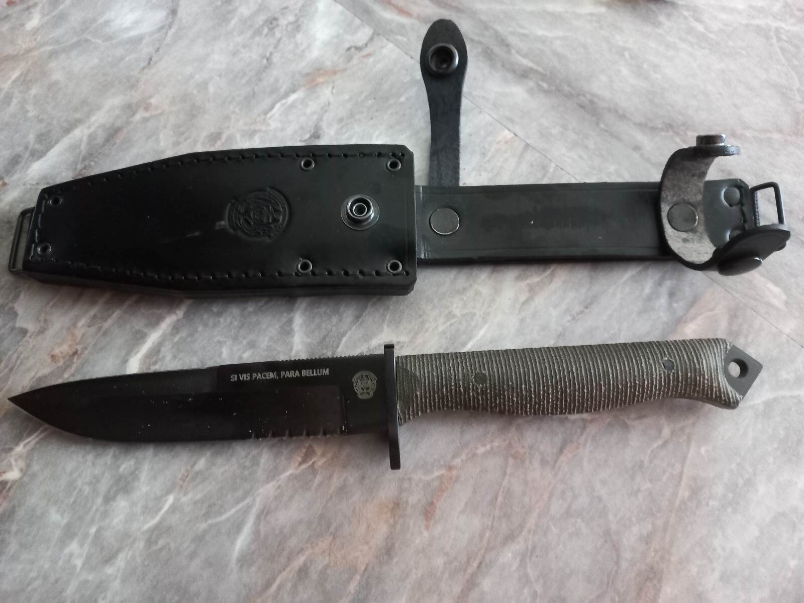 Na fotografiích vidíte falzifikát vojenského nože Falco, vyrobený p. Maďaričem. Na noži nesedí značení loga na první straně. Tohle značení nebylo na sérii D, kterou je nůž označen na druhé straně. Pořadové číslo 15 je také nesmysl a absolutně nemůže sedět s rokem výroby 2019 uvedeným na noži. Číslo 015 bylo vyrobeno v roce 2008 a jako důkaz tady dávám fotografii pravého Falca z roku 2008 série D s pořadovým číslem 18. Další co si můžete všimnout je barva kožených kroužků — v roce 2008 kdy bylo pravé Falco vyrobeno jsou hnědé, tady na falzifikátu jsou z tmavě modré až černé kůže, tedy kůže kterou výrobce začal používat o několik let později až mu došla hnědá kůže.