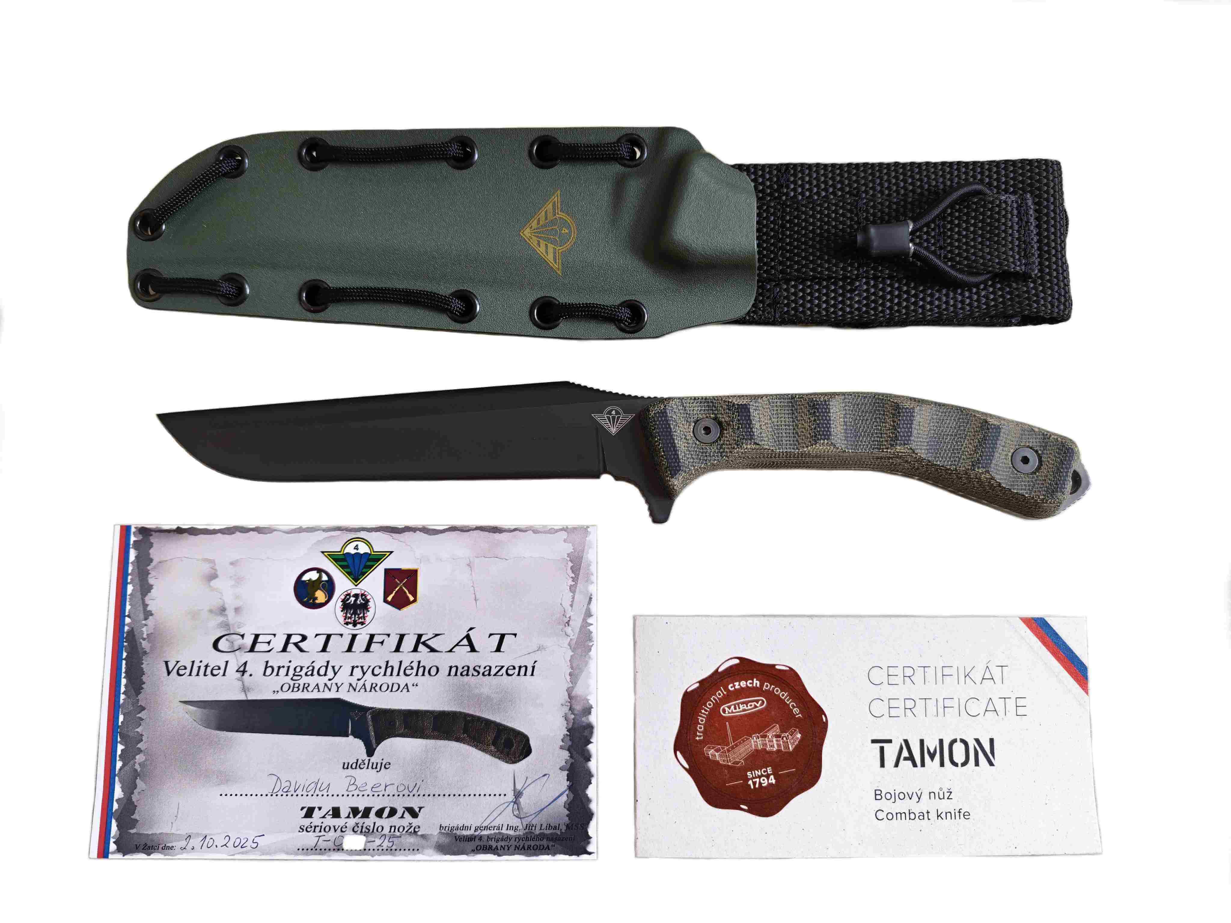 Nůž vznikl v roce 2024 z iniciativy velení 4. brigády rychlého nasazení k připomínce 30. výročí jejího vzniku. Název TAMON vznikl spojením písmen z motta brigády „TAM, kde jiní nestačí" a z čestného názvu „Obrany Národa". Nůž navrhl major Roman Hippík a vyrobila ho firma Mikov. Čepel je z oceli N690 s DLC úpravou, rukojeť z micarta zelené barvy. Celková délka 285 mm, čepel 149 mm. Dodáváno s kydexovým pouzdrem, certifikátem výrobce a certifikátem od velení brigády.