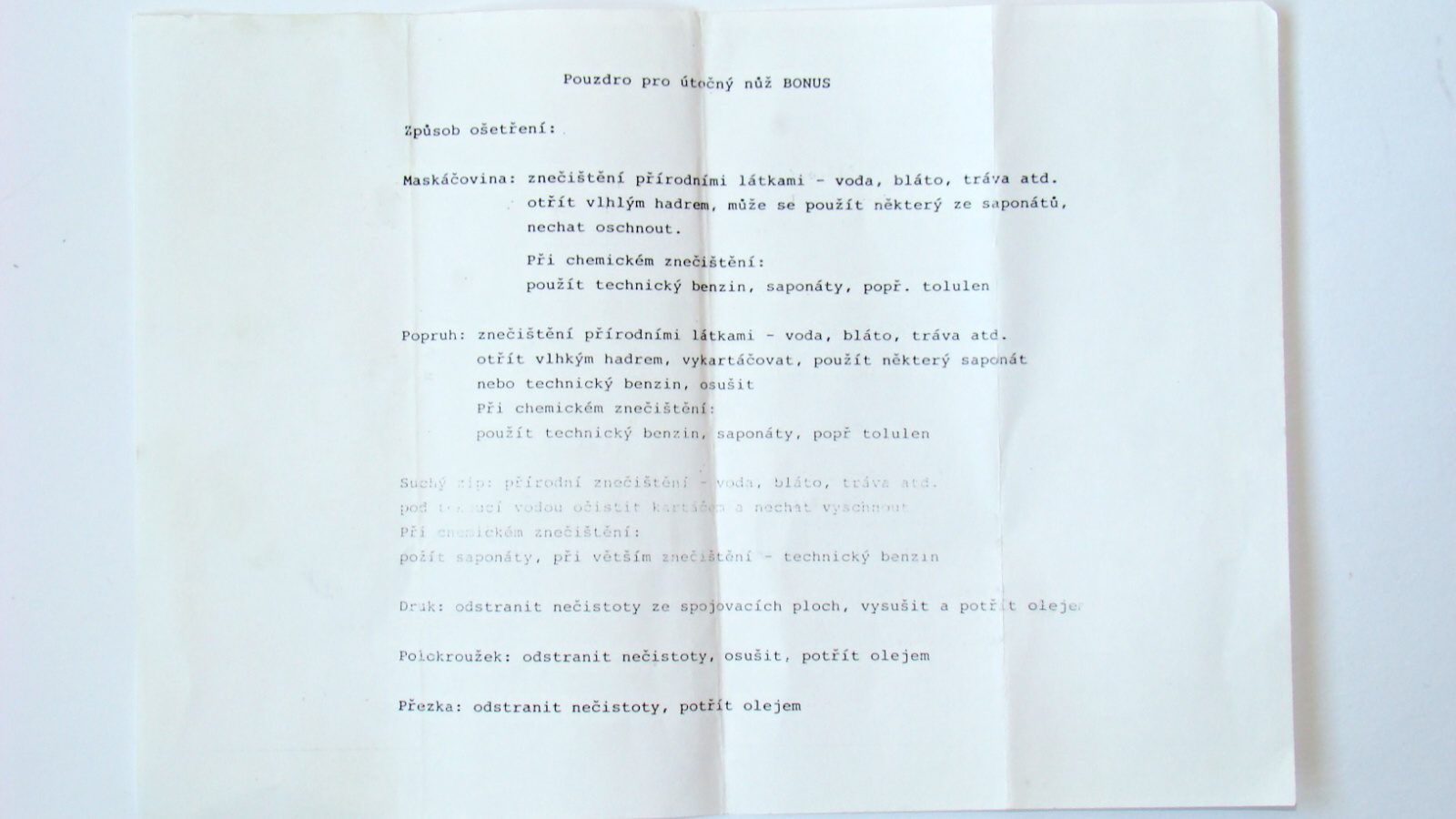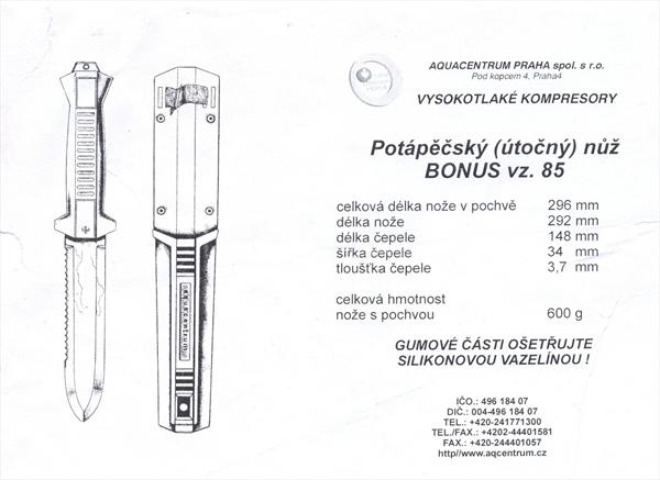 Typy nožů BONUS vz.85