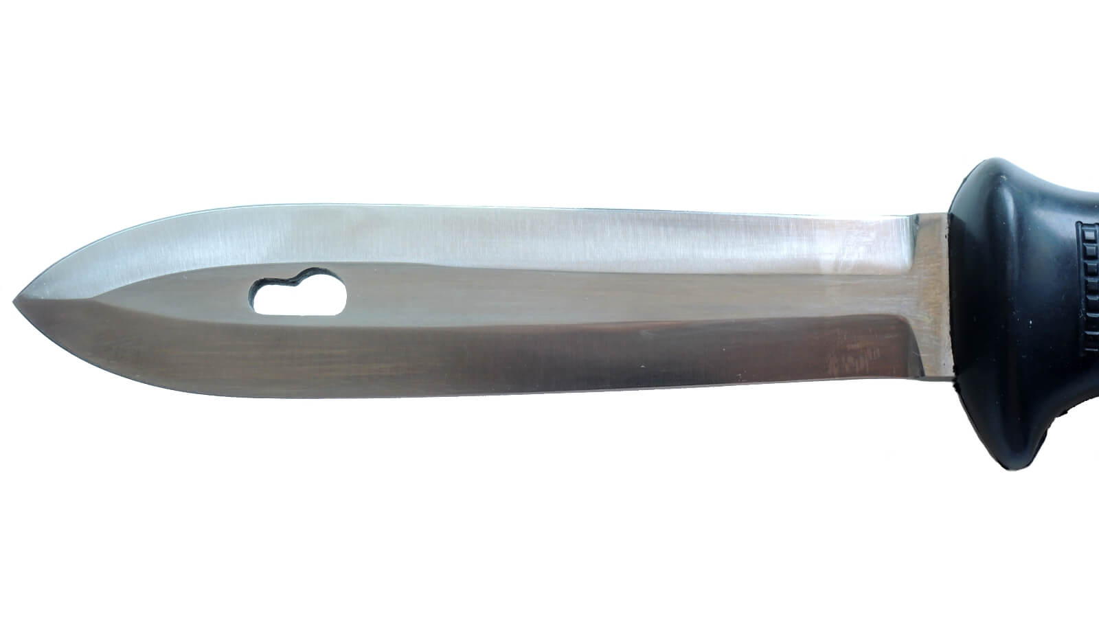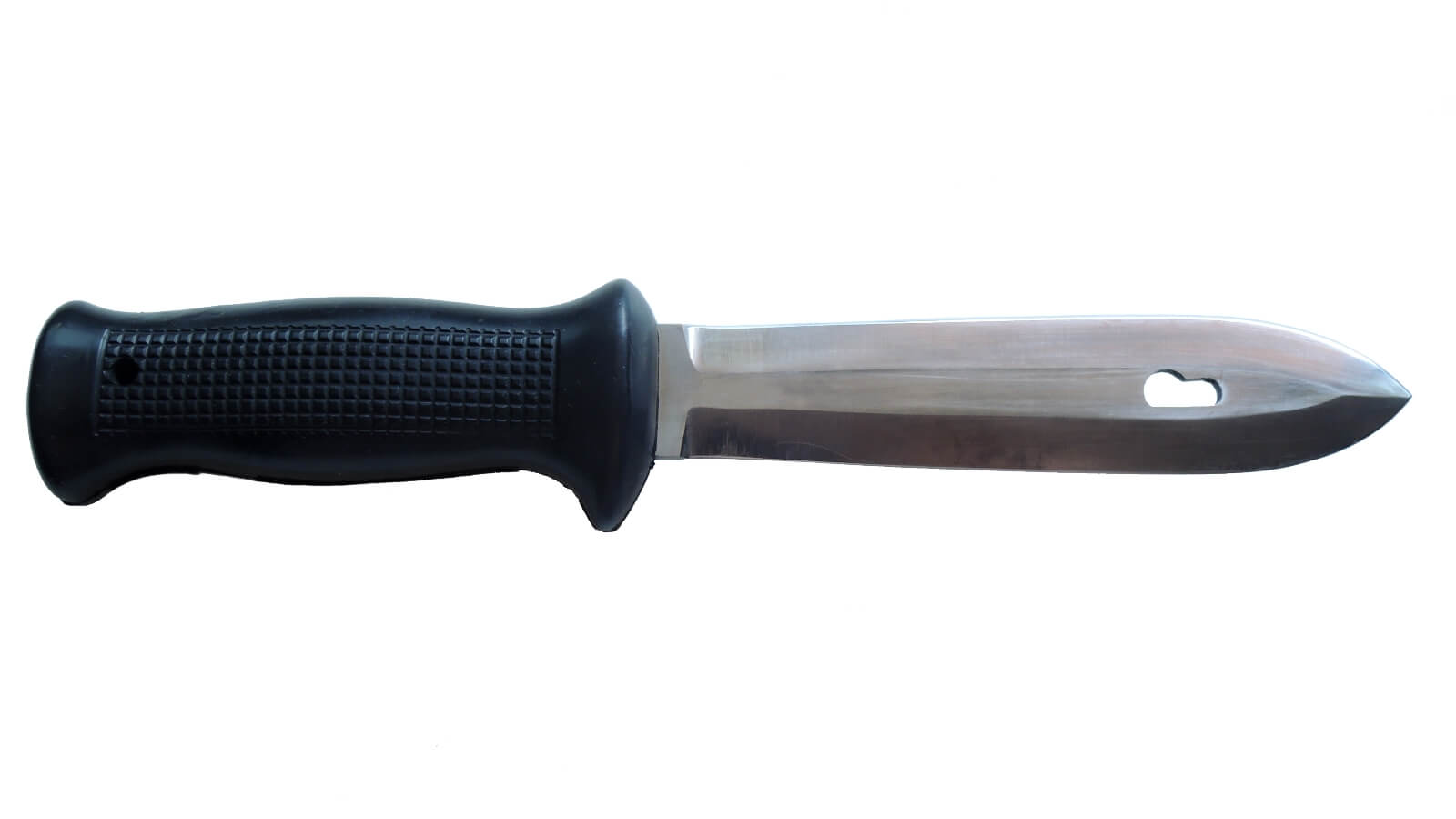 Prototyp UTONu pro piloty s dvoubřitou čepelí a nezavedenými koženými pochvami.
