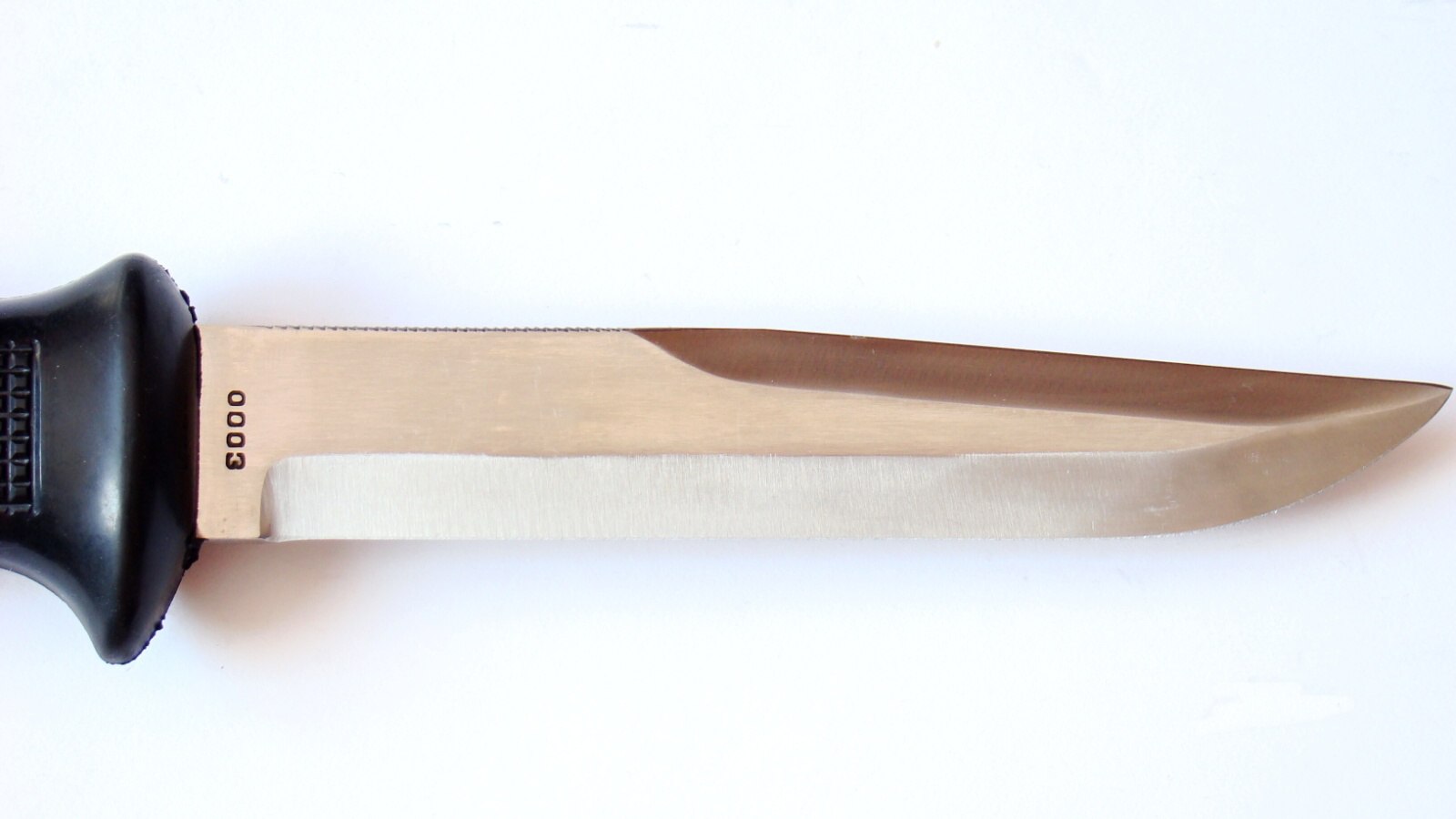 Série 0003 — vyrobeno cca 4500 kusů. Pochva s malými půlkulatými mosznými nýty, přejímací značka 1977.