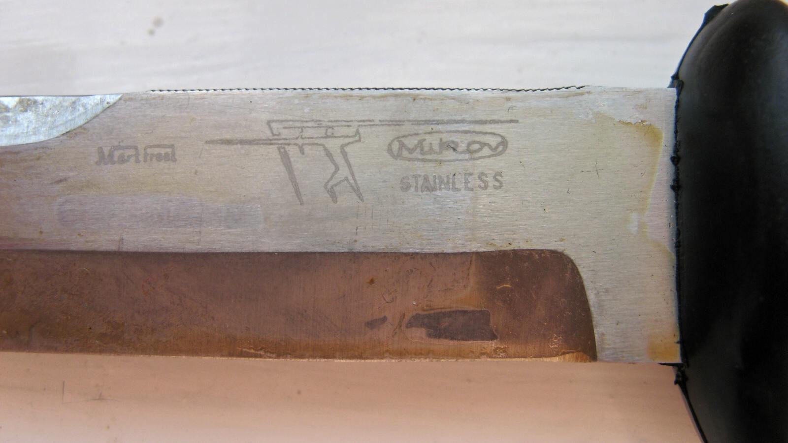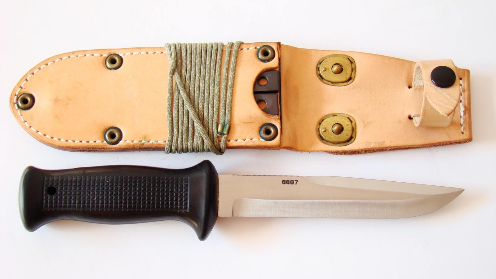 Série 0007 — nové nože s konzervační vazelínou i bez. Poslední pochvy s velkým nýtem, přejatá rokem 1983.