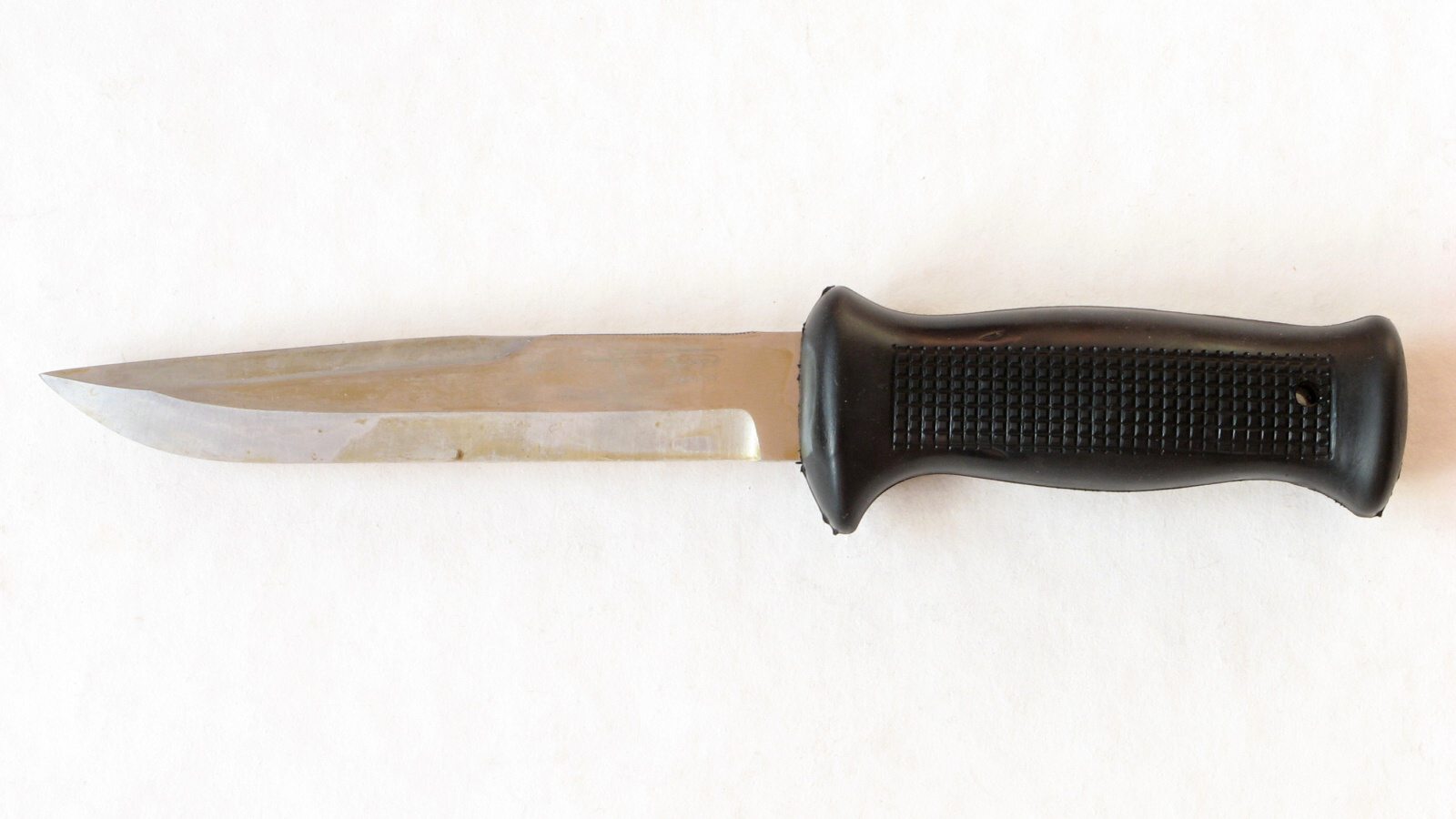 Nové nože UTON 0007 — první s konzervační vazelínou P, druhý bez. Poslední verze pochev s velkým nýtem přejatá rokem 1983.