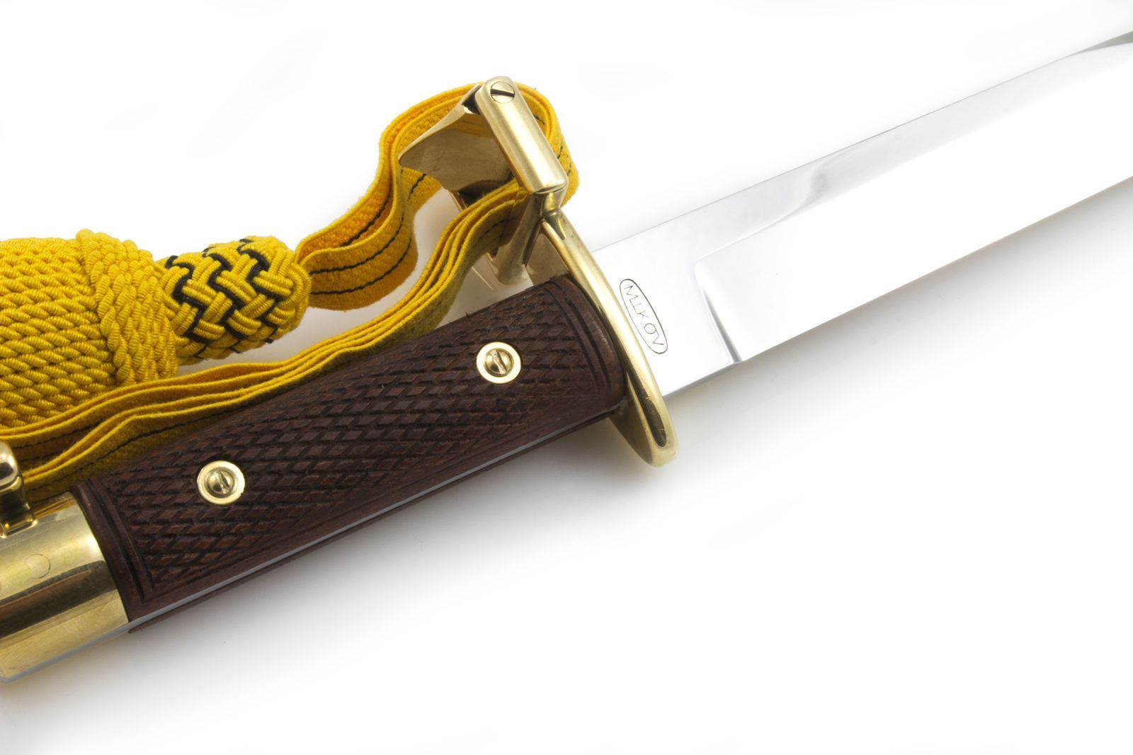Na výrobu čepele byla použita nerezová ocel AISI 420. Kování, erb a nos pochvy jsou ze slitiny mosazi. Ručky jsou z mořeného bukového dřeva s rybinovou výzdobou. Pochva je z ocelového plechu a matně černé hovězí kůže. Nůž je dodáván v polstrované dřevěné kazetě s certifikátem originality a publikací o historii této zbraně.