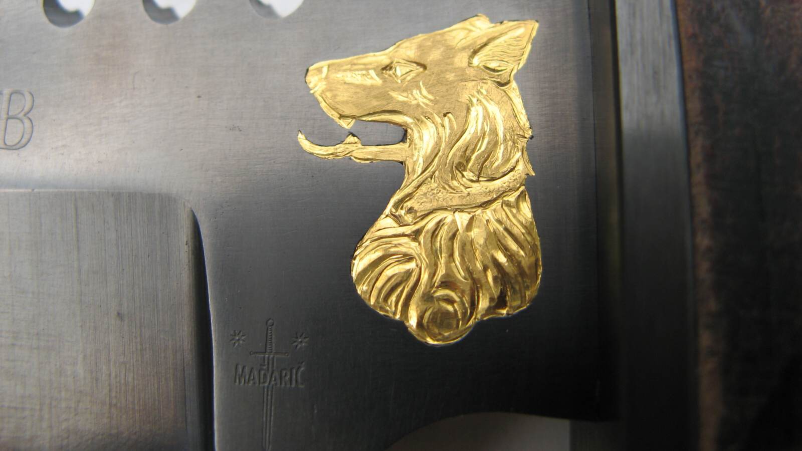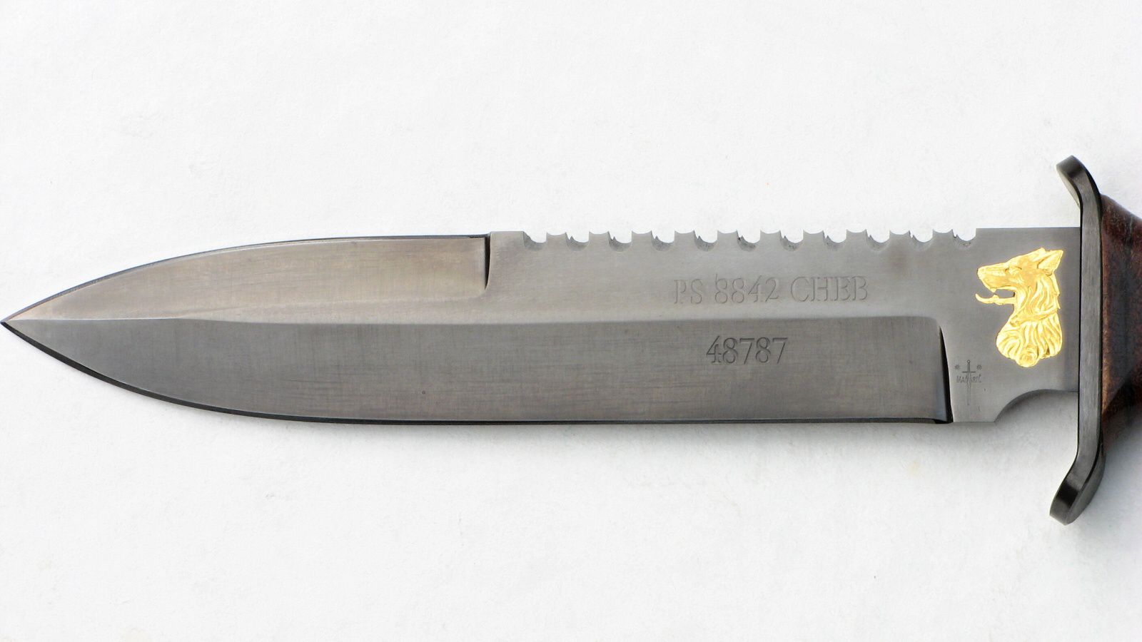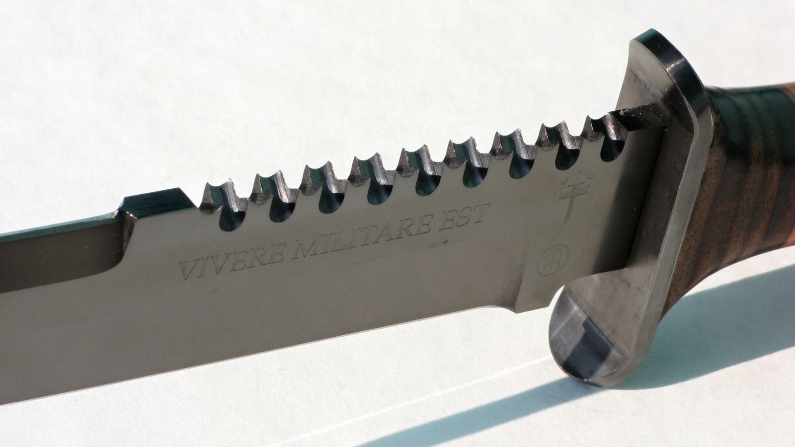 Na levé straně čepele je latinský nápis „Vivere Militare Est" — v překladu „Život je boj". Autor designu je Ing. Roman Hippík, nůž vyrábí Lubomír Maďarič z Brna, kožené pochvy zhotovuje firma Hess z Brna.