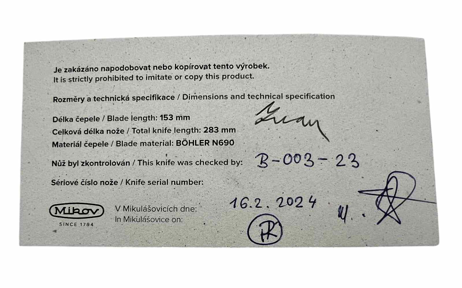 V roce 2023 vznikla další modifikace pro příslušníky 152. ženijního praporu Bechyně. Na levé straně čepele je krom znaku jednotky latinský nápis SEMPER EST VIA — motto praporu „Vždy existuje cesta". Nůž nyní vyrábí firma Mikov a kydexová pouzdra nožíř Jindřich Kutil.