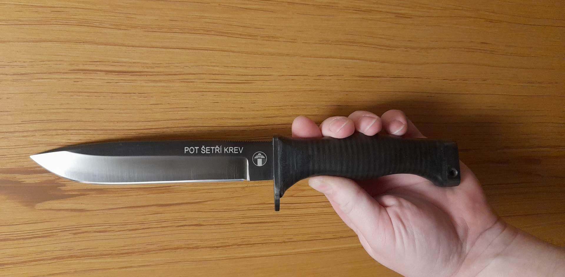 Na fotografiích vidíte falzifikát nože Dragon pro brněnskou zásahovou jednotku. Originál má na rukojeti použité ořechové dřevo s rybinou.