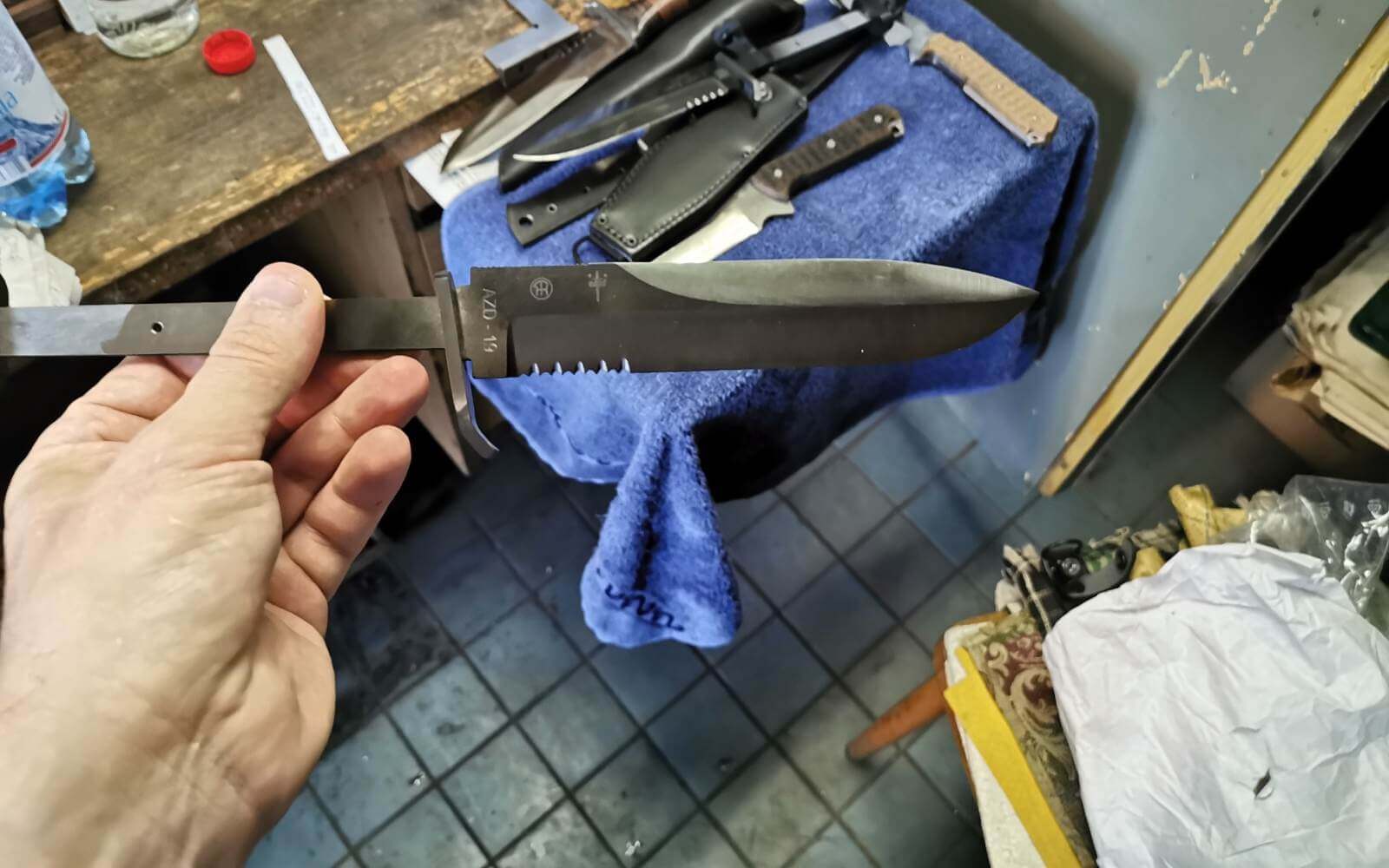 Na fotografiích vidíte falzifikát vojenského nože AZD. Tento nůž byl vyroben ve velmi malém počtu pro 121 rotu AZ cca v roce 2008. Tenhle kus spolu s druhým na fotografii je falzifikát vyrobený pro kamarády pana Maďariče — pana V.S. a pana J.B. ze Slovenska. Originál má na pravé straně značení ve formátu číslo nože, rok výroby a AZD3/121. Tahle napodobenina má jen značení AZD a rok 2019.
