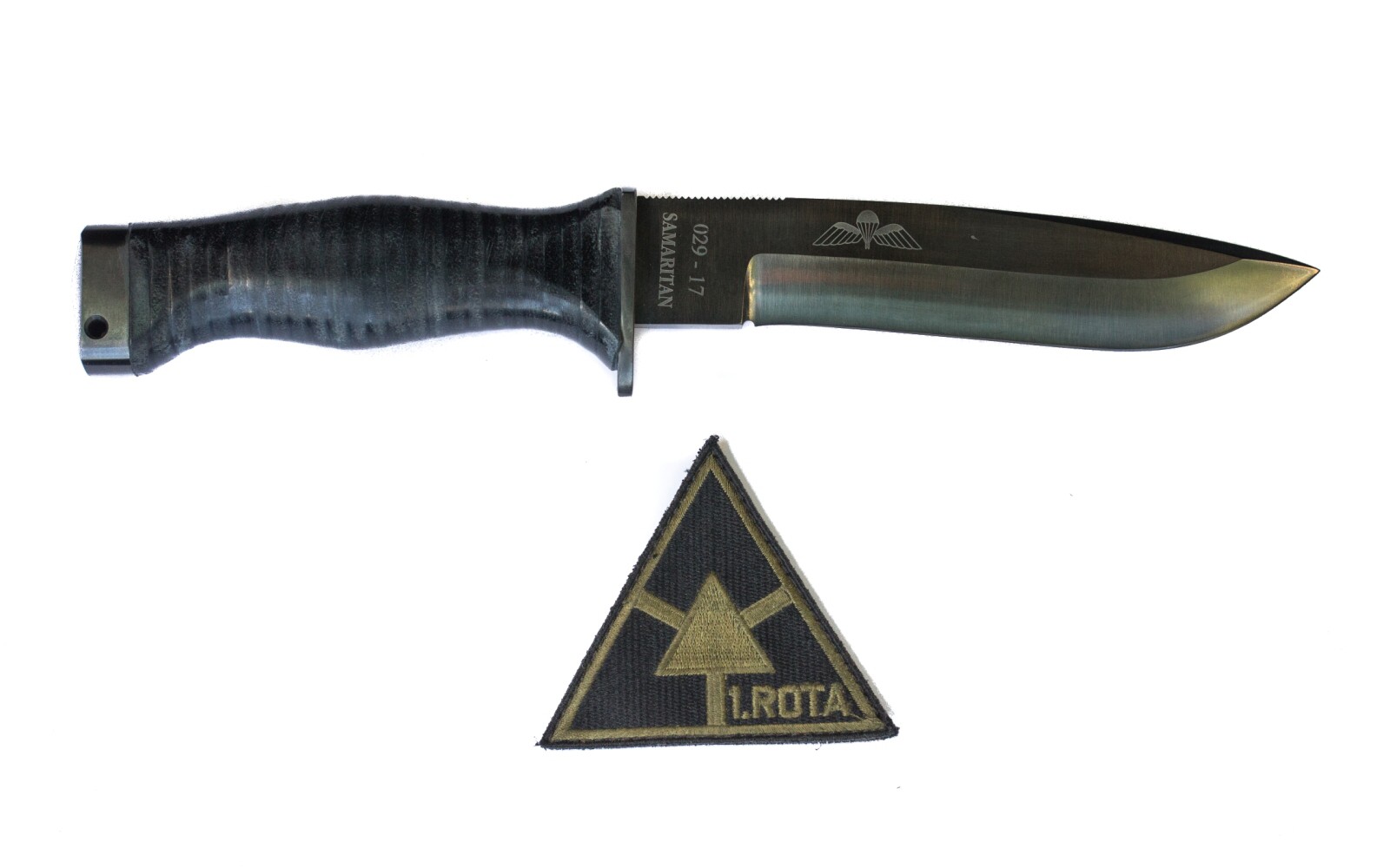Nůž Samaritan je určen pro příslušníky 1. roty mechanizovaného praporu Tábor, 4. brigády rychlého nasazení. Design vychází z modelu Honoris A. Samaritan je vyroben z pružinové oceli 14260, rukojeť z kožených kroužků. Na pravé straně čepele jsou výsadková křídla. Nůž vyrobil Lubomír Maďarič z Brna, pochvu firma Hess Brno podle návrhu Ing. Romana Hippíka.