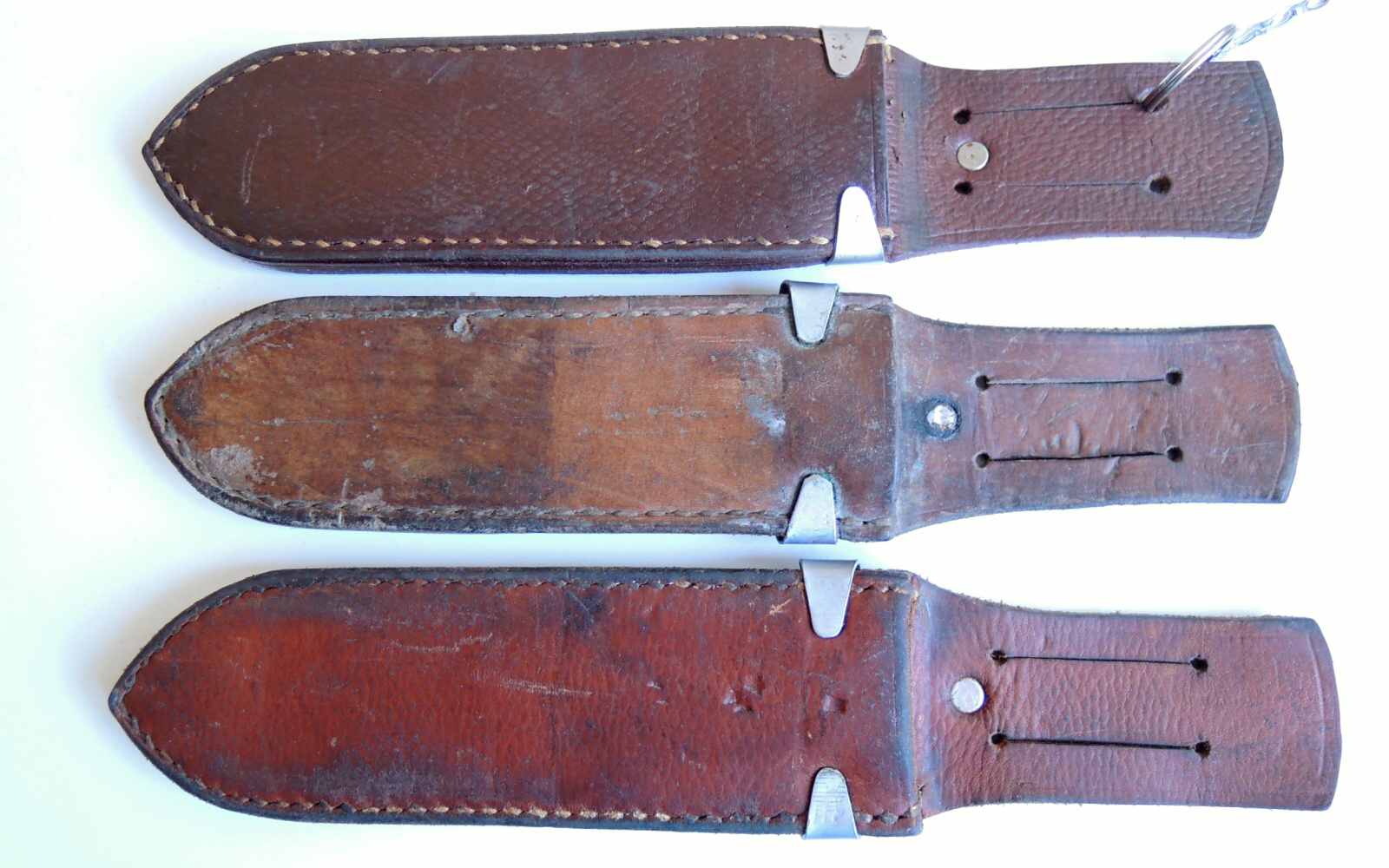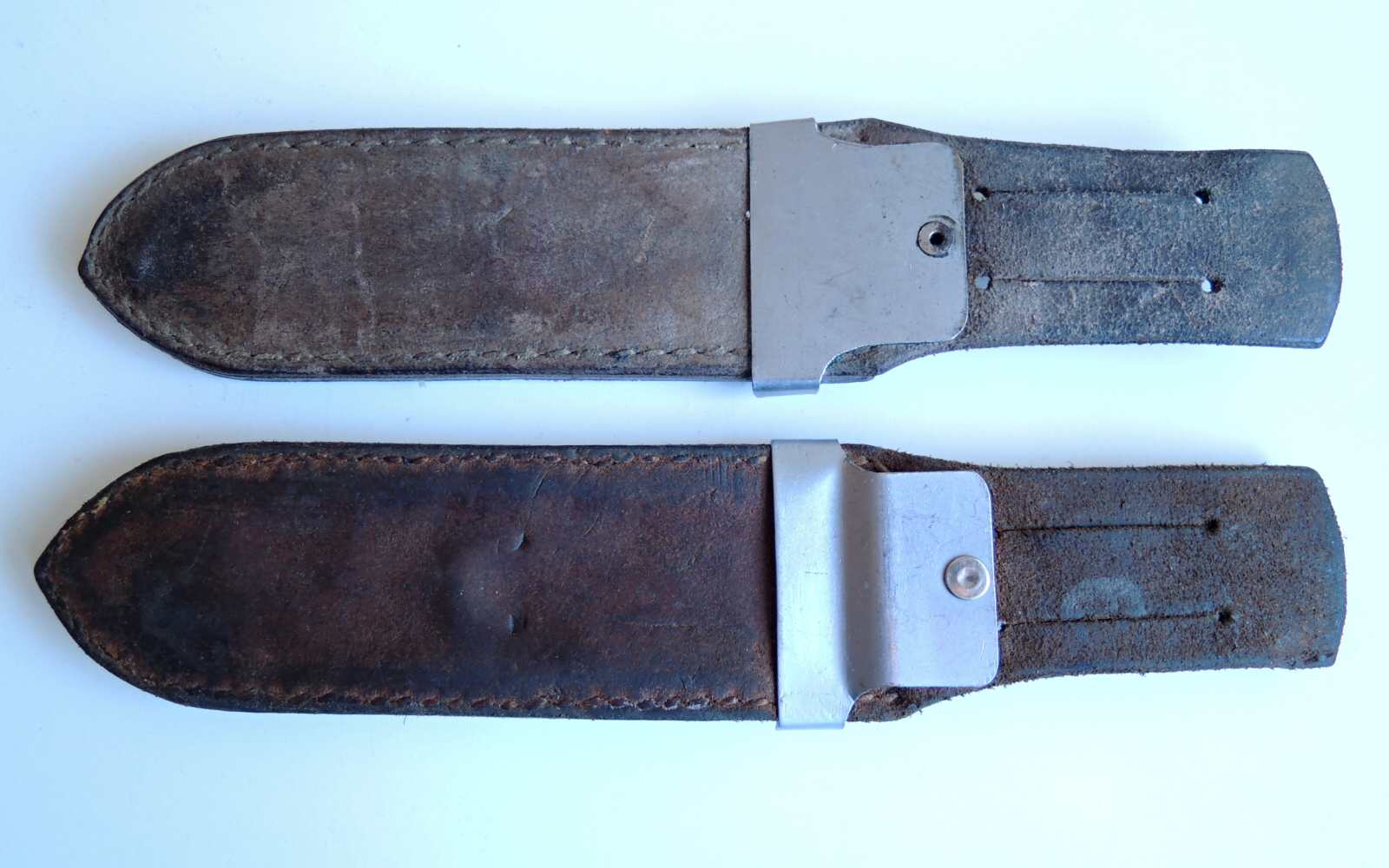 Existuje také druhá varianta nože s větším vybrání pro prsty na rukojeti a oboustranně broušenými zuby na hřbetu čepele. Kožená pochva má u ústí přinýtovanou destičku z ocelového plechu se zahnutými raménky jako náhrada obůstku. Bohužel kožené pochvy při styku s vodou tvrdly a napouštěly se olejem — většina dochovaných pochev je ve stavu patrném na fotografiích.