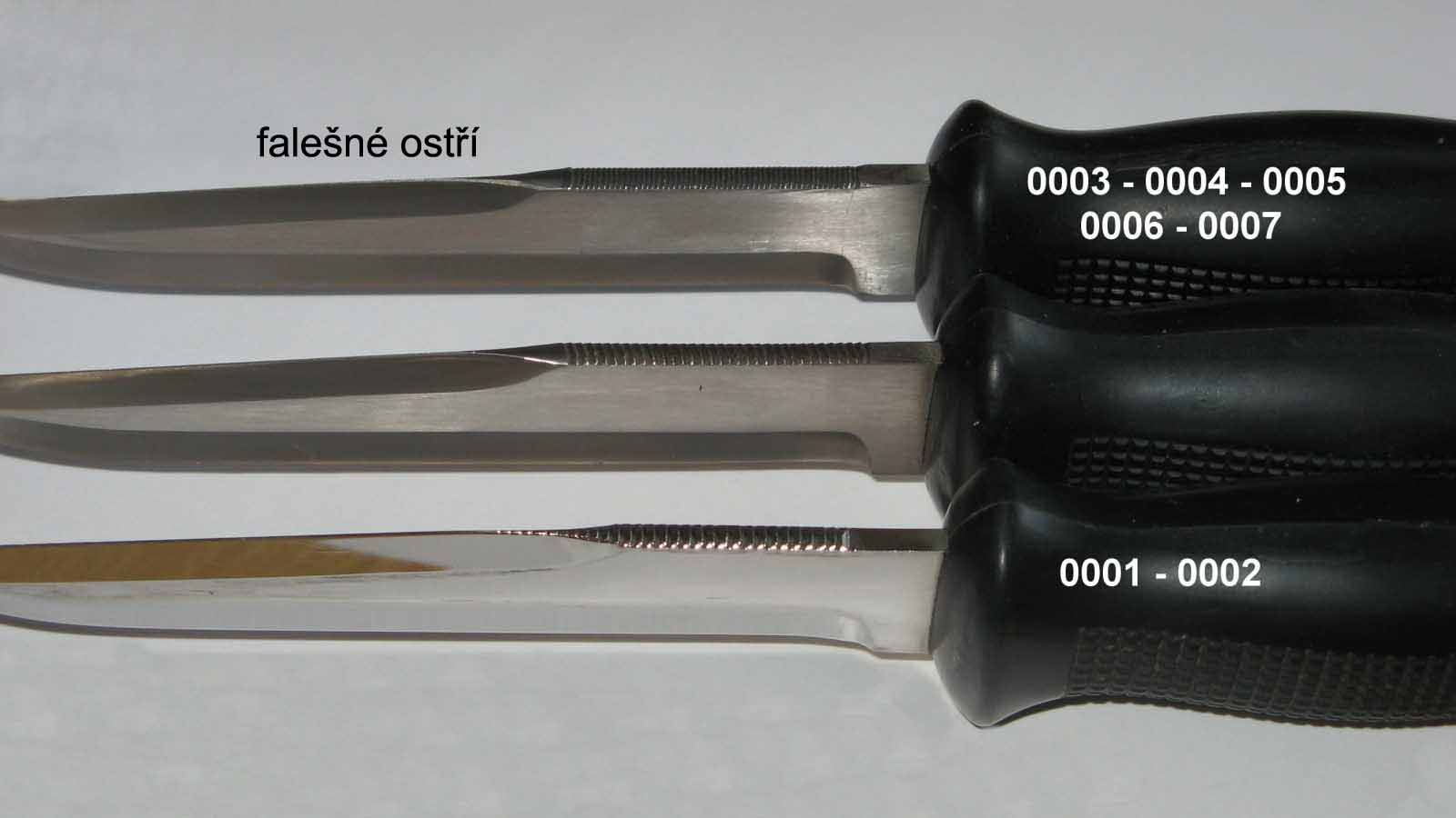 Na fotografii vidíte rozdíly falešného ostří čepelí. U série 0001 a 0002 je falešné ostří nabroušeno blíže k rukojeti a zasahuje i do opěrky palce. U ostatních sérií je falešné ostří nabroušeno před opěrku palce. Tyto informace poslouží hlavně začínajícím sběratelům — díky rozdílům v opěrce palce a vrchního brusu se Vám nemůže stát, že koupíte předělaný UTON.