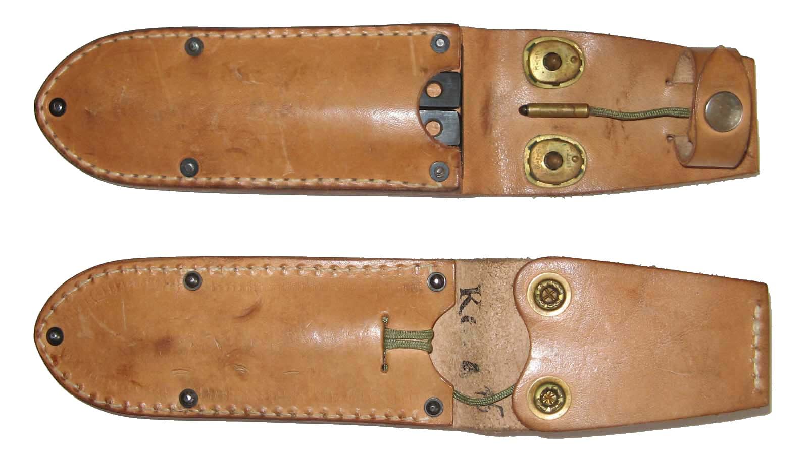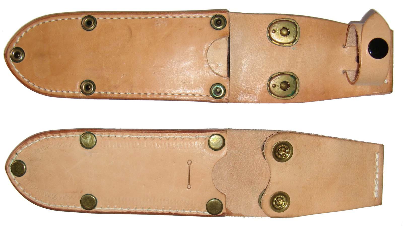 Druhá pochva — malé mosazné nýty s podložkami z obou stran. Tato pochva byla vyrobena pro UTONy série 0002 a 0003.